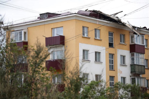 Последствия удара стихии – в Корсакове на каждой улице. Кровли повреждены на 81 доме, из них 16 разрушены полностью.
