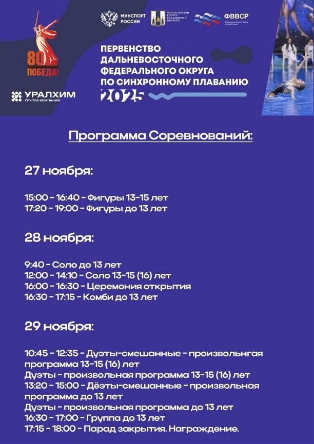 С 27 по 29 ноября лучшие синхронистки Дальнего Востока выступят в бассейне ЦВВС "Волна". Торжественная церемония открытия соревнований начнется 28 ноября в 16:00.