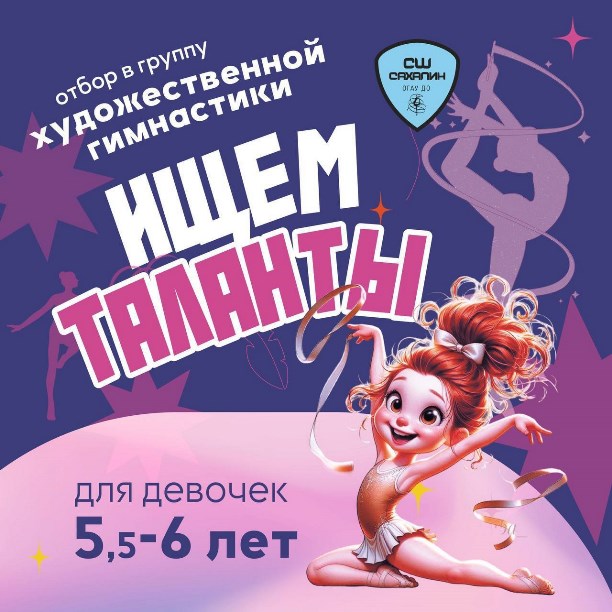 Спортивная школа "Сахалин" проводит отбор в группу художественной гимнастики для девочек 2019-2020 года рождения под руководством мастера спорта по художественной гимнастике, тренера высшей категории, старшего тренера СШ "Сахалин" - Екатерины Александровны Королёвой.