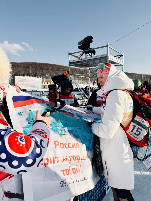 К слову, накануне Александр Большунов взял награду высшей пробы среди мужчин (23:59,9). Поддержать спортсмена пришли болельщики, в том числе прибывшие вслед за ним на Сахалин из других регионов России.