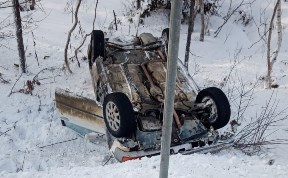 Иномарка опрокинулась при ДТП в Южно-Сахалинске