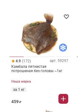 Smertny, специально для верящих в сказки, что якобы "наша рыба в Москве дешевле" - сегодня замороженная камбала в столице стоит в среднем 300-600 руб. за кг. (непотрошеная - от 300 руб., филе - от 600 руб.).