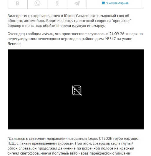 Лихач на Lexus на скорости "пропахал" бордюр в попытках обогнать автомобиль в Южно-Сахалинске