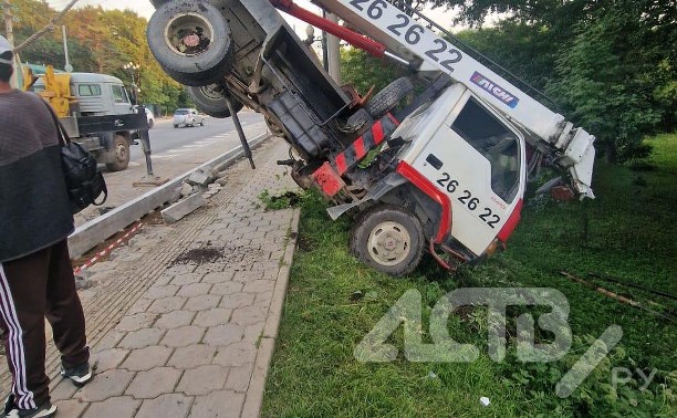 Мусоровоз улетел с трассы и врезался в дерево в Смирныховском районе