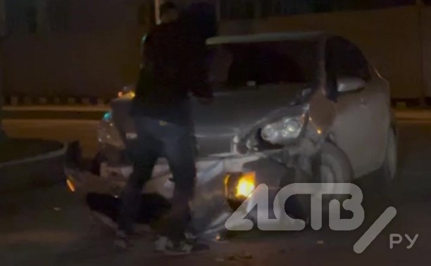 "Двое пострадали": момент столкновения "Кроуна" и спортивного мотоцикла в Южно-Сахалинске попал на видео