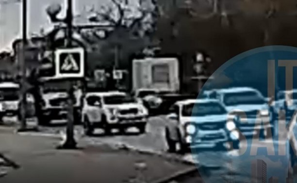Последствия вечернего ДТП попали на видео в Южно-Сахалинске