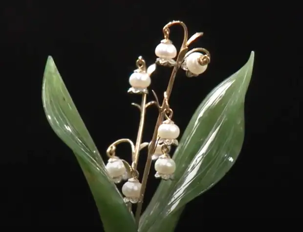 Веточка нежнейших ландышей. Нефритовые листья, жемчужно-бриллиантовые цветки