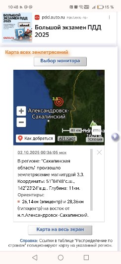 Сегодня в 8:36 ещё было землетрясение возле с. Мгачи