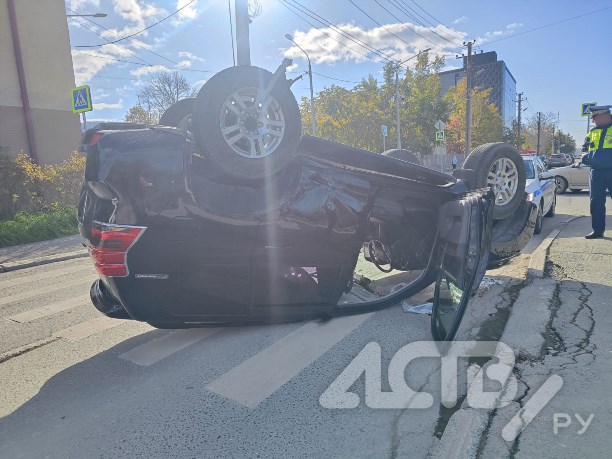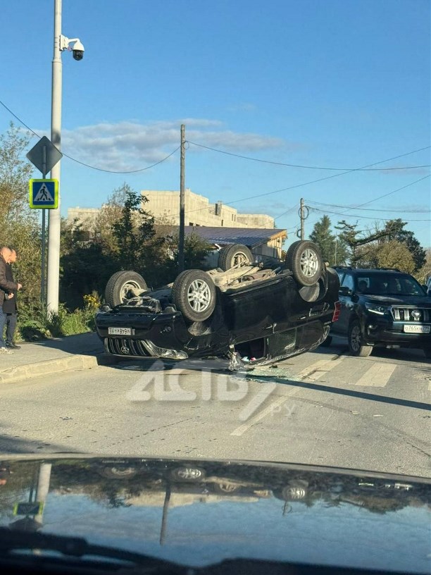 Серьёзное ДТП случилось на улице Комсомольской в Южно-Сахалинске утром 11 октября. Недалеко от здания МРЭО ГАИ перевернулся чёрный Toyota Land Cruiser Prado. В распоряжении редакции astv.ru оказались фото с места события.