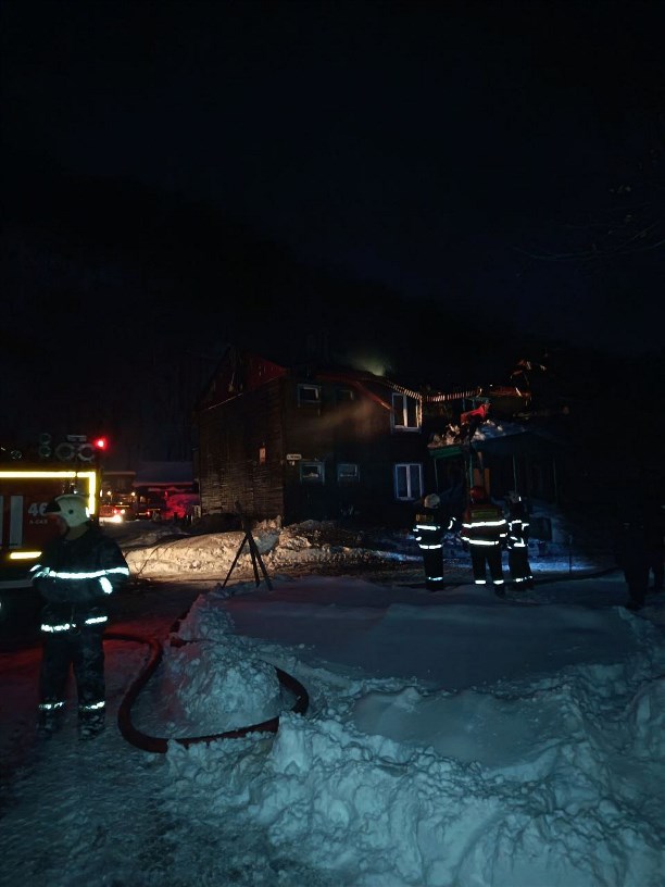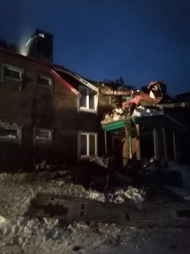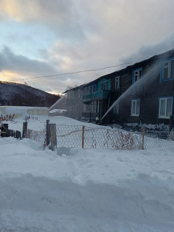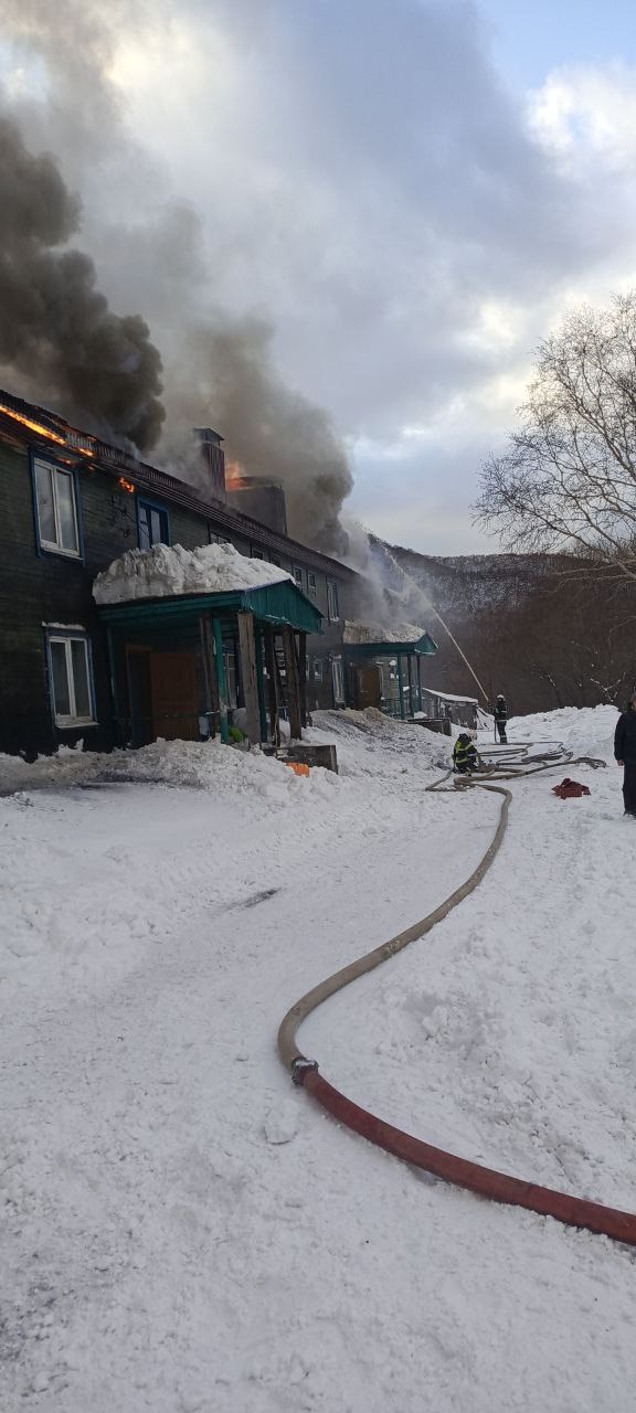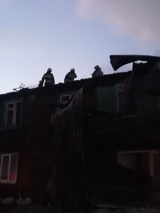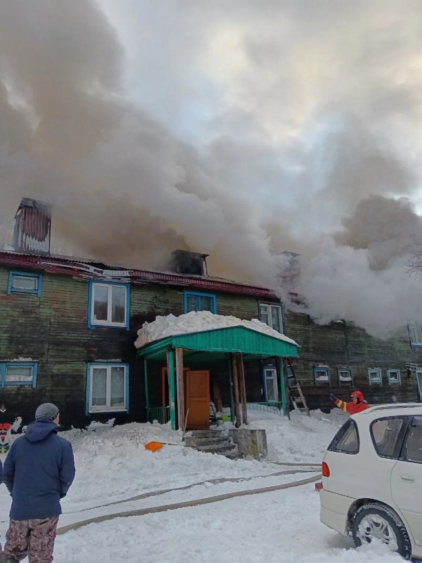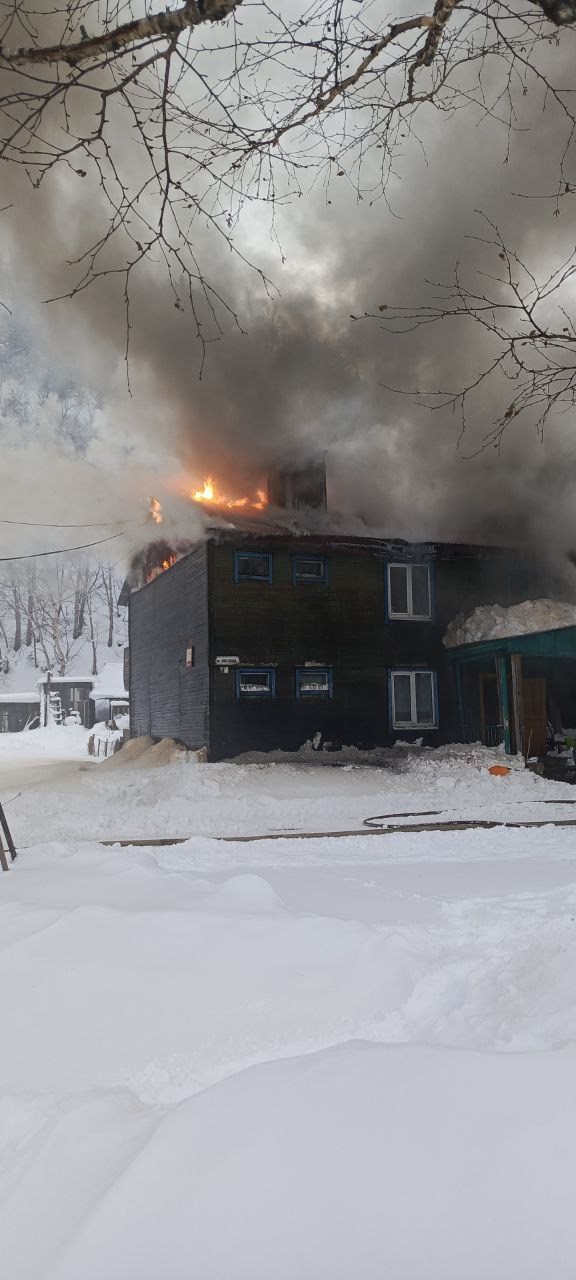 Появились фото тушения крупного пожара в селе Арково. Там днём 5 декабря полыхал расселённый восьмиквартирный дом.