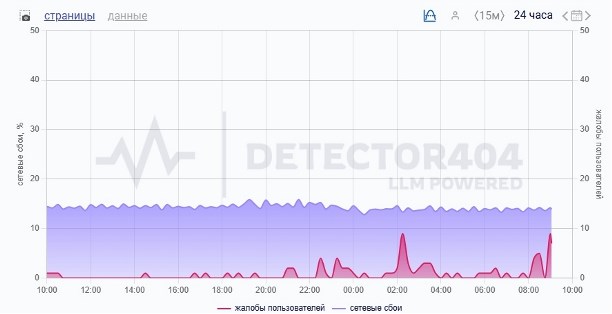 На сервисе-детекторе сбоев есть некоторый всплеск жалоб из шести городов, однако он незначительный.