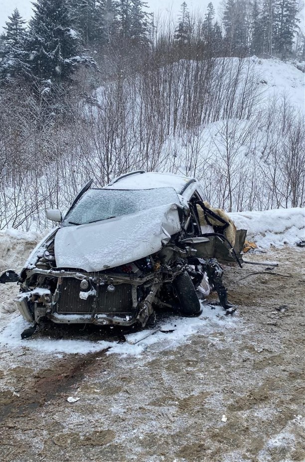 В пожарно-спасательной службе Сахалинской области рассказали подробности вызволения пострадавшего водителя универсала - в результате столкновения его зажало в искорёженной иномарке.