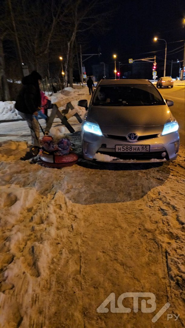 Родители воспитанников детсада в Южно-Сахалинске просят привлечь к ответственности автохама, который утром 20 января заставил их с малышами идти по сугробам. Водитель иномарки придумал парковку там, где её нет, полностью перегородив проезд.