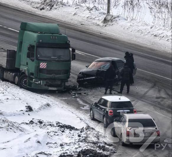 Очевидцы рассказали, что в припаркованный на обочине большегруз на скорости влетел седан. Что послужило причиной и есть ли пострадавшие - пока неизвестно.