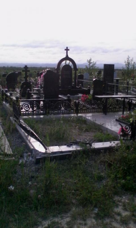 От редакции: Как сообщил astv.ru руководить МУП "Бюро ритуальных услуг" которая занимается обслуживаем кладбища, Владимир Посметный, речь о вандализме, в данном случае, не идет. Повреждения надгробиям нанес тракторист компании. "Ему стало плохо за рулем, он свернул с дорожки и снес несколько оградок", - сообщил Григорий Посметный. По его словам руководство МУП БРУ уже связались почти со всеми родственниками людей, чьи могилы пострадали и начали работу по восстановлению надгробий.