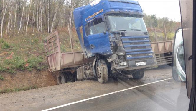 Как стало известно astv.ru, по предварительной информации, тягач Scania выехал на встречную полосу и совершил столкновение с микроавтобусом Nissan Serena и внедорожником Toyota Land Cruiser. Автомобили разлетелись в разные стороны проезжей части, съехали в кювет.