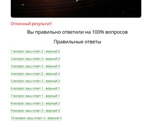 Вы когда-нибудь мечтали стать астрофизиком или космонавтом? Этот тест поможет понять, насколько ваши знания соответствуют звёздным стандартам. Отвечайте на вопросы, исследуйте космос — и узнайте свой уровень космической эрудиции.