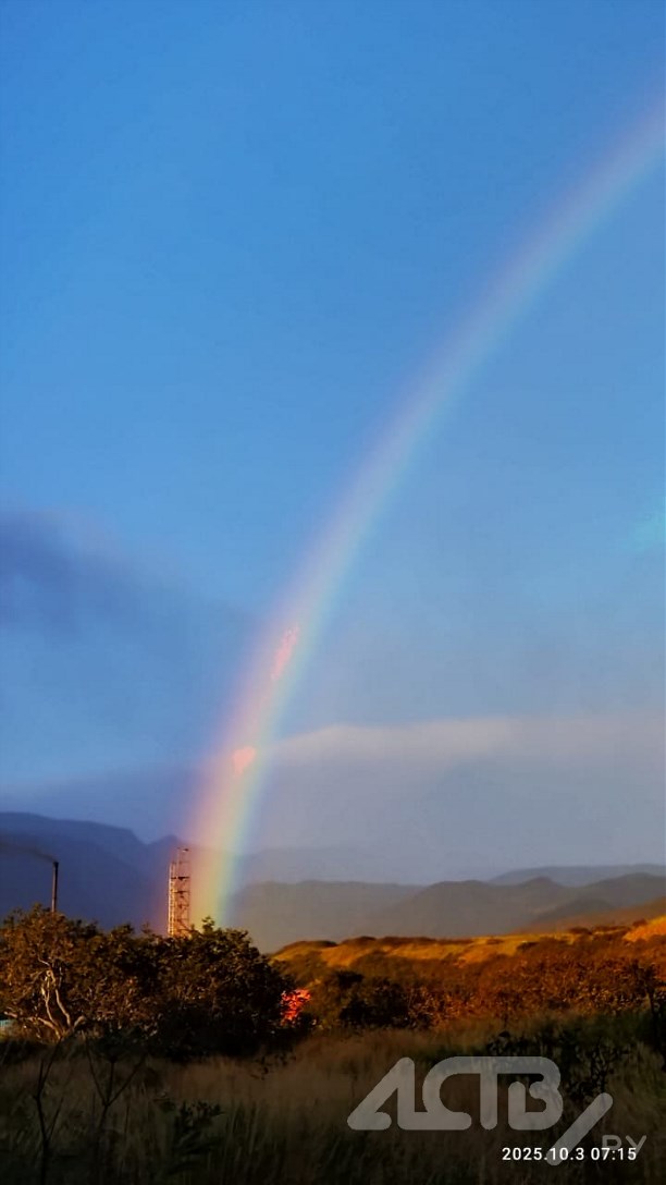 Северо-Курильск 3 октября озарила невероятно красивая радуга. Атмосферное оптическое явление наблюдали на Парамушире на рассвете.