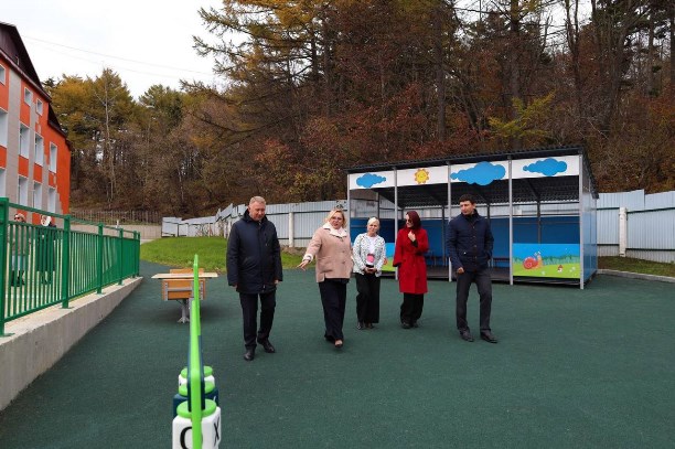 В детском саду № 23 "Золотой петушок" в Корсакове завершилось комплексное обустройство территории. Оно проходило в рамках региональной программы "Счастливое детство". Теперь ребята могут ежедневно пользоваться современными и безопасными площадками. С результатами выполненных работ ознакомилась глава Корсаковского района Наталия Куприна: