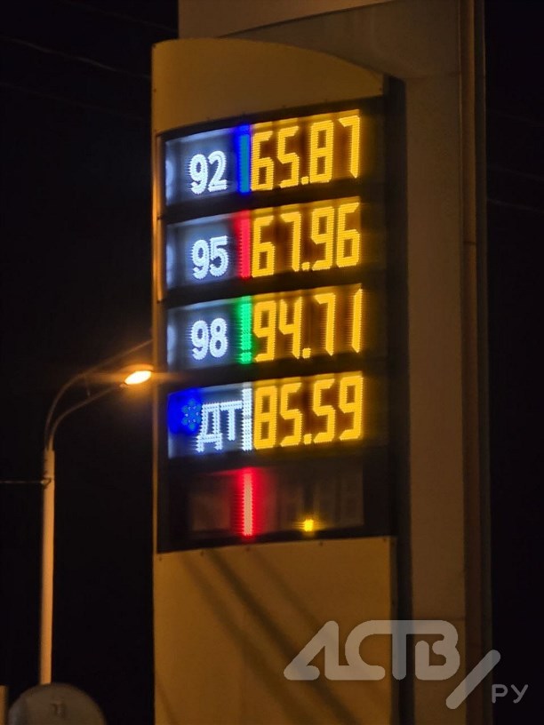 Как стало известно astv.ru, стоимость увеличилась на 90 копеек. Актуальные цены: АИ-92 стоит 65 рублей 87 копеек за литр, АИ-95 - 67 рублей 96 копеек, АИ-98 - 94 рубля 71 копейка, солярка - 85 рублей 59 копеек.