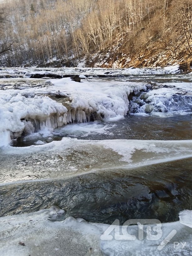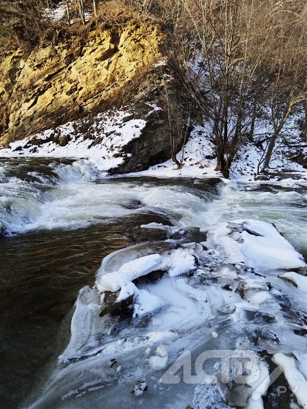 Быковские пороги в Долинском районе продолжает притягивать местных жителей и туристов. Бушующий поток, мощно стекающий по "лестнице", уже кое-где подморозило, придав месту особый ноябрьский шарм.