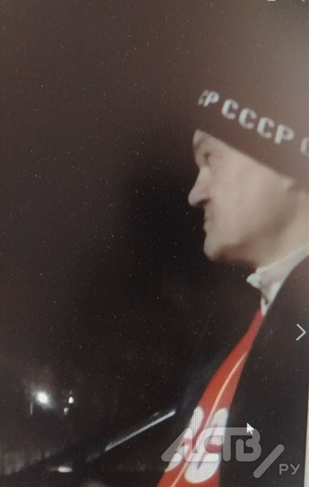 Был одет: серые спортивные штаны, красная спортивная кофта с надписью "СССР", черная куртка, вязаная шапка с надписью "СССР".