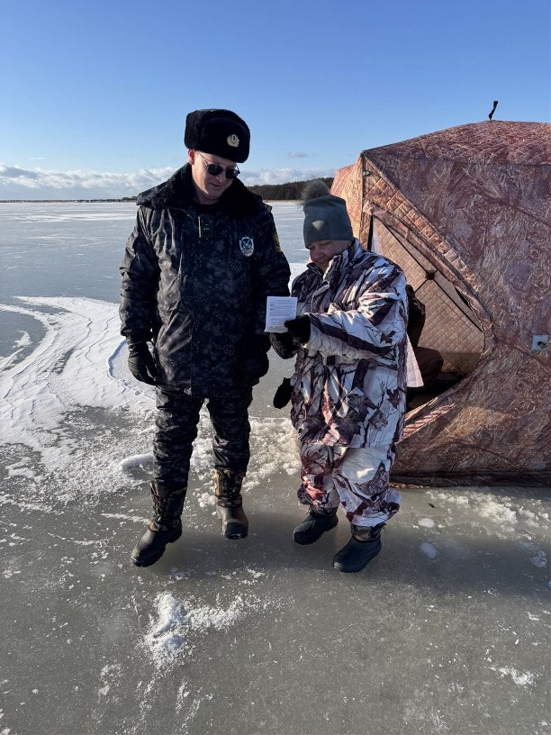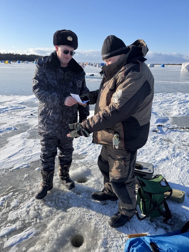 В Сахалинской области продолжаются профилактические рейды по выявлению нарушений в сфере природных ресурсов в сезон подлёдной ловли. Инспекторы рыбоохраны ежедневно информируют рыбаков о правилах рыболовства и безопасности на льду.