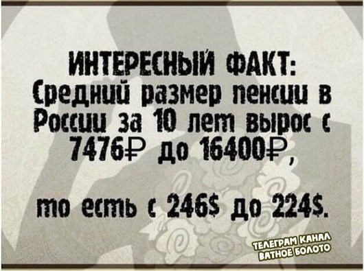 После пенсионной реформы количество пенсионеров стремительно сокращается. Но денег для нормальной индексации всё равно нет. Кто-нибудь верит, что индексация 7,6%, выше инфляции?
