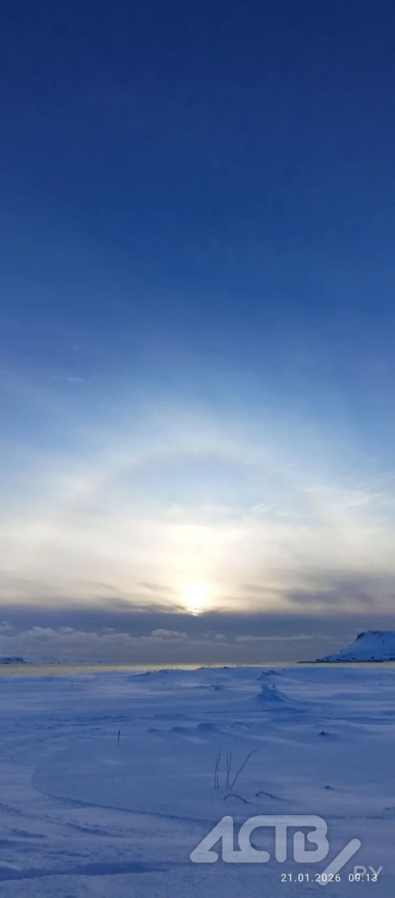 Фантастически красивое гало озарило небо в Северо-Курильске. Интересное оптическое явление наблюдали местные жители утром 21 января.