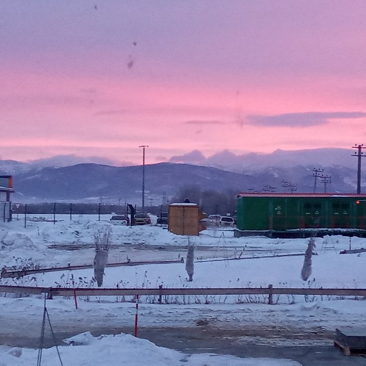 Необычный цвет неба порадовал сахалинцев, спешащих на работу утром 3 февраля. Малиновый рассвет вдохновил горожан запечатлеть прекрасную картину на фото.