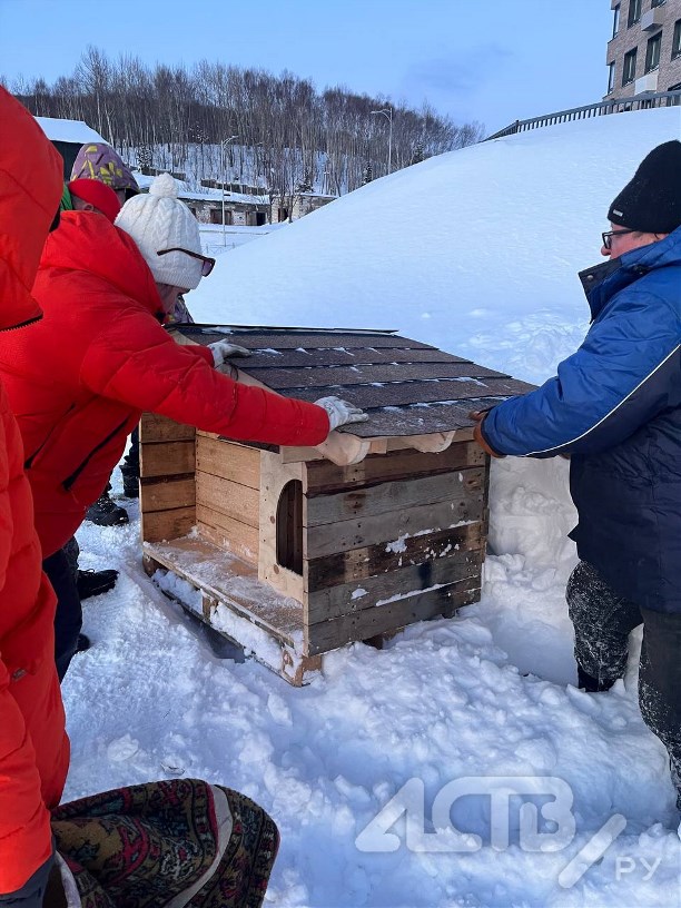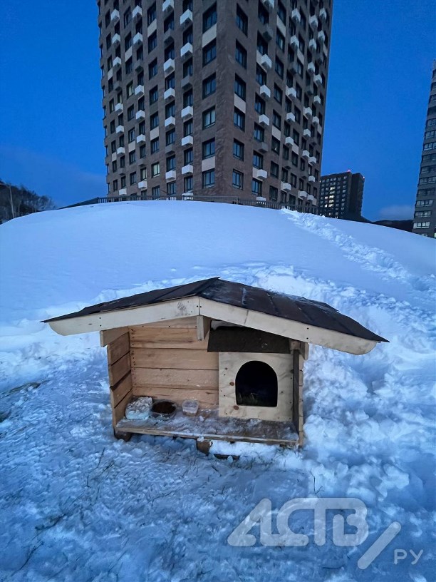 Неравнодушная жительница вместе с друзьями построила двухкомнатную будку для местной собаки в ЖК "Уюн парк". Чёрная собака давно живёт на склоне у нового жилого комплекса и, по словам очевидцев, появилась здесь ещё до начала стройки, сообщает Telegram-канал "Эхо Сахалина".