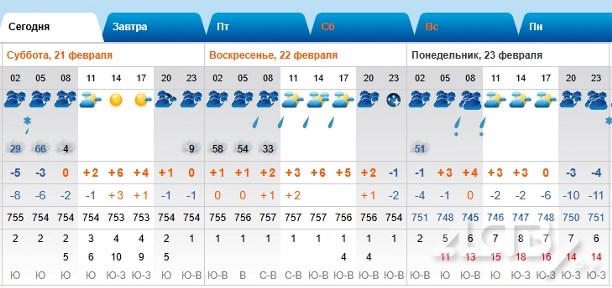 Между тем уже в воскресенье, 22 февраля, начнёт подступать циклон. Он несёт порывистый ветер и осадки. Активнее разгуляется стихия в понедельник, 23 февраля: почти по всех районах ждут небольшие дожди, мокрый снег и порывы на отдельных участках до 18 м/с.