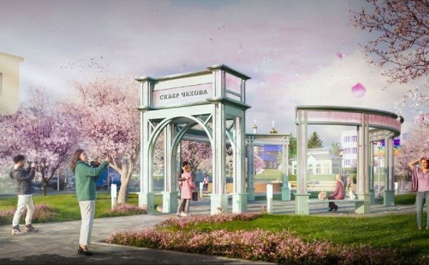 В обновленном общественном пространстве появятся фонтан, современная детская игровая площадка и уютные зоны отдыха, оснащенные навесами и беседками. Для культурных мероприятий предусмотрят сцену и амфитеатр. Также в сквере организуют площадку для буккроссинга и установят скульптуру, посвященную Антону Павловичу Чехову. Дополнят атмосферу высаженные деревья вишни и сакуры.