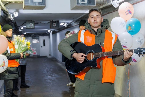 Праздничную атмосферу дополнила живая музыка: на перроне звучала гитара, создавая тёплое и душевное настроение.