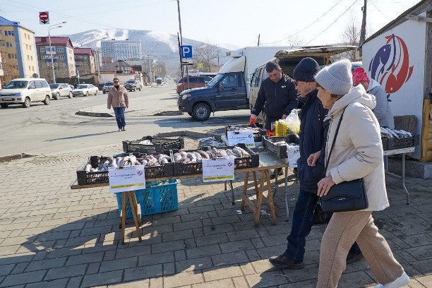 Для удобства южносахалинцев в городе развернута широкая сеть точек продаж. Предусмотрено 35 уличных площадок, места на которых предоставляются участникам проекта бесплатно. Также "социальную" рыбу можно найти в стационарных торговых объектах. Сейчас жителям доступны виды, вылавливаемые в межсезонье: навага, треска, минтай и камбала.