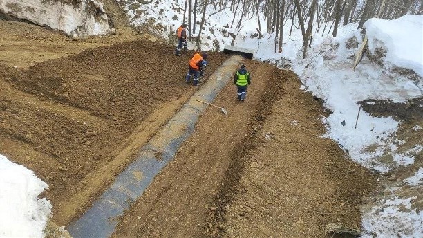 В 2026 году на участке автодороги Тымовское – Александровск-Сахалинский с 44 по 49 км подрядная организация АО "Долинское ДРСУ" продолжает капитальный ремонт в рамках президентского нацпроекта "Инфраструктура для жизни". На сегодняшний день специалисты завершили комплекс подготовительных работ и приступили к устройству железобетонных труб.