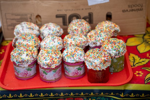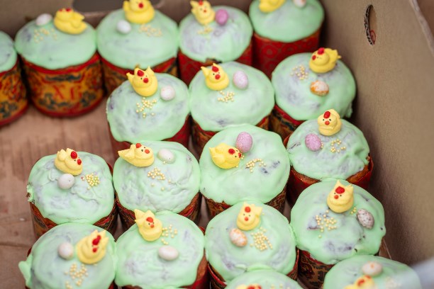 Особым спросом пользовались куличи, пасхи и яйца. На ярмарке можно было увидеть большое разнообразие пасхальной выпечки с разными видами декора. У каждого производителя свой фирменный секрет - кто-то добавляет в куличи морковное пюре, у других - особый вкус придает натуральный творог.