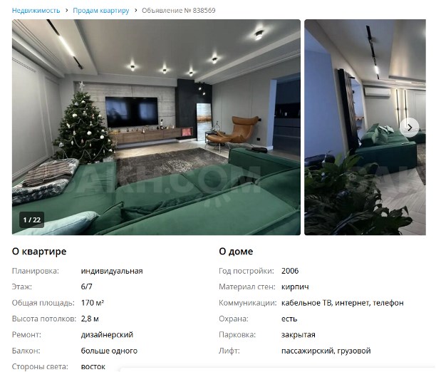 Двухуровневая квартира, где 170 м² по документам превращаются почти в 186 м² ощущений. Покупателю предлагают три изолированные спальни, два санузла и продуманная кухня — всё "из премиальных материалов".