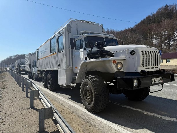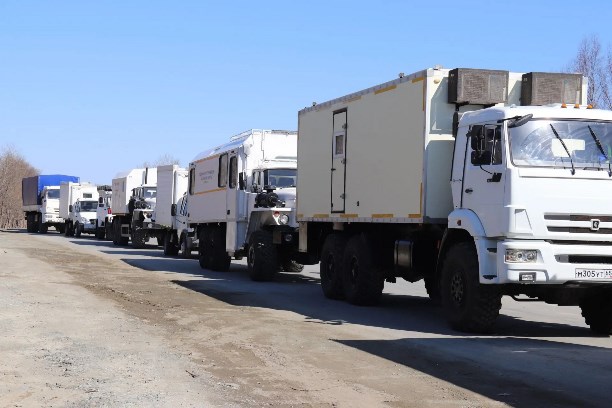 Согласно задаче, техника, входящая в состав подвижного пункта управления, совершила марш протяжённостью в 100 километров по Сахалинской области в район условной ЧС.