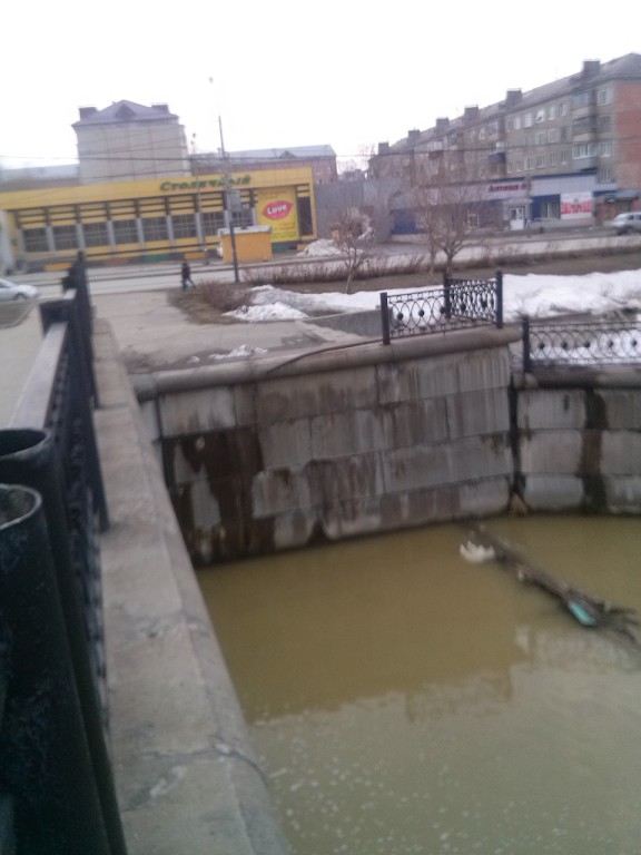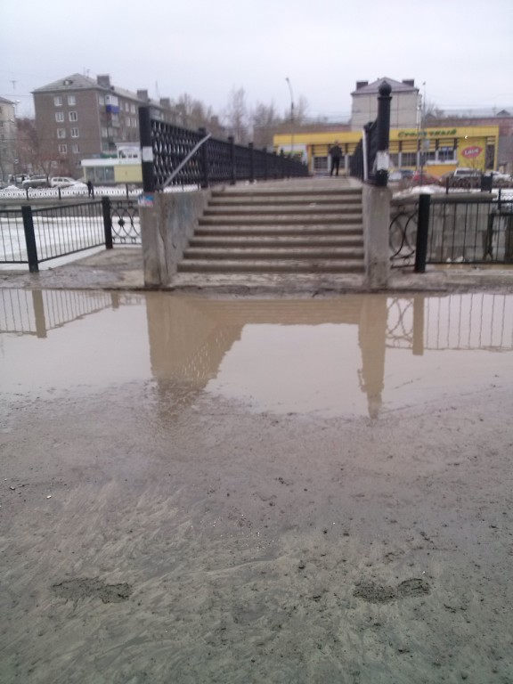 Вот так наши дети ходят в детский сад №38 и школу №4 в Южно-Сахалинске. Забор у набережной, рядом с мостом, поломан - часть ограждения отсутствует. Кругом лужи.