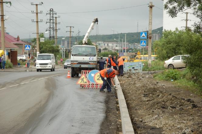 Администрация Холмского городского округа проводит мероприятия по благоустройству дорог и прилегающих территорий. На сегодняшний день заканчивается капитальный ремонт дорожного полотна по улице Первомайская, сообщает пресс-служба администрации округа.