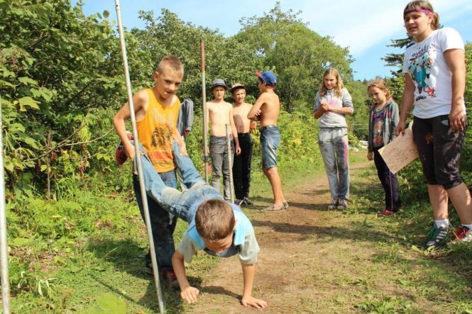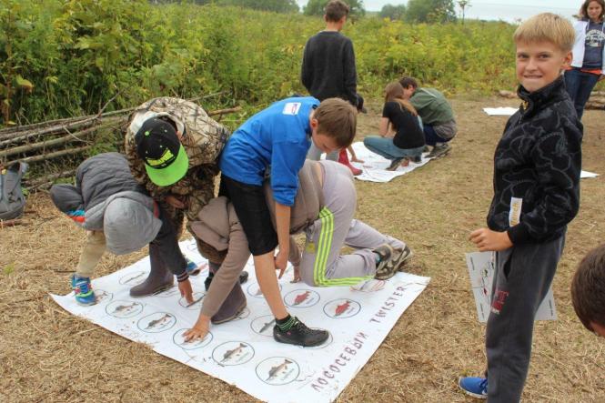 С экологической программой «Сохраним лосося вместе» в лагерь приезжали компания «Сахалин Энерджи» и общественная организация Клуб «Бумеранг». Для ребят они провели кругосветку о лососях, с играми и презентацией спектакля «Как Иван чудо-рыбу спасал». Видеоверсию спектакля участники посмотрели вечером на «лесном экране».