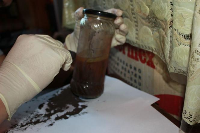 В момент появления полицейских в квартире находилась хозяйка квартиры и её приятель, которые изготовили наркотик из подручных средств (кодеиносодержащие препараты, бензин и ацетон, щелочь), но употребить дурман они не успели. Наркополицейские провели осмотр данного помещения и изъяли: использованные медицинские шпицы с остатками бурого вещества, само наркотическое зелье и те ингредиенты, из которых готовился дурман. Данные предметы направлены на исследование в экспертно-криминалистическую лабораторию Управления ФСКН России по Сахалинской области.