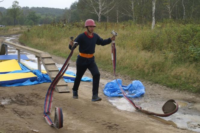 Как сообщает пресс-служба Главного управления МЧС России по Сахалинской области, организаторами первого этапа соревнований выступило региональное отделение ВДПО. Командам по восемь человек в каждой необходимо было преодолеть ряд препятствий. На старте школьники ползком проходили через «тоннель», затем один из участников команды должен был показать знания пожароно-технического вооружения. На столе был разложен пожарный инвентарь и карточки с их названиями. Задача разложить карточки на инвентарь, не ошибаясь в его названии. Далее участники команды соединяли рукавную линию и струёй воды из пожарного ствола сбивали мяч, установленный на специальной металлической конструкции.