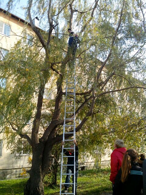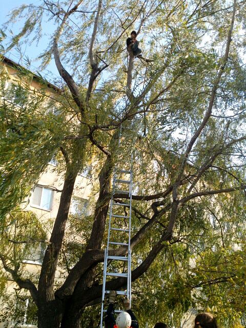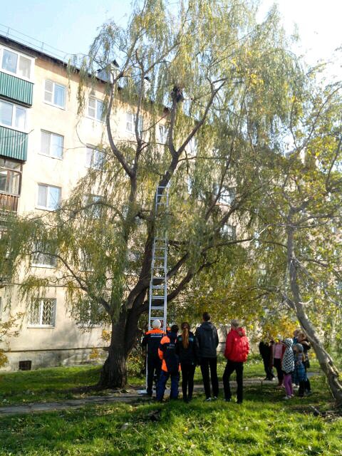 \t\tДля того, чтобы спустить ребенка на землю, пришлось использовать спецтехнику.