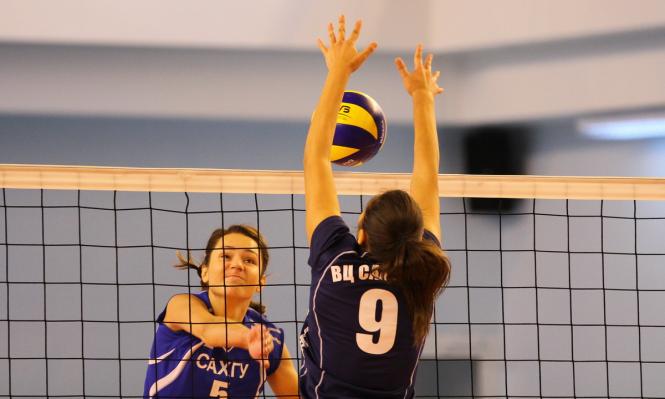 Сегодня в очной встрече между командами СахГУ и ВЦ «Сахалин» верх одержали спортсменки госуниверситета (3:1).